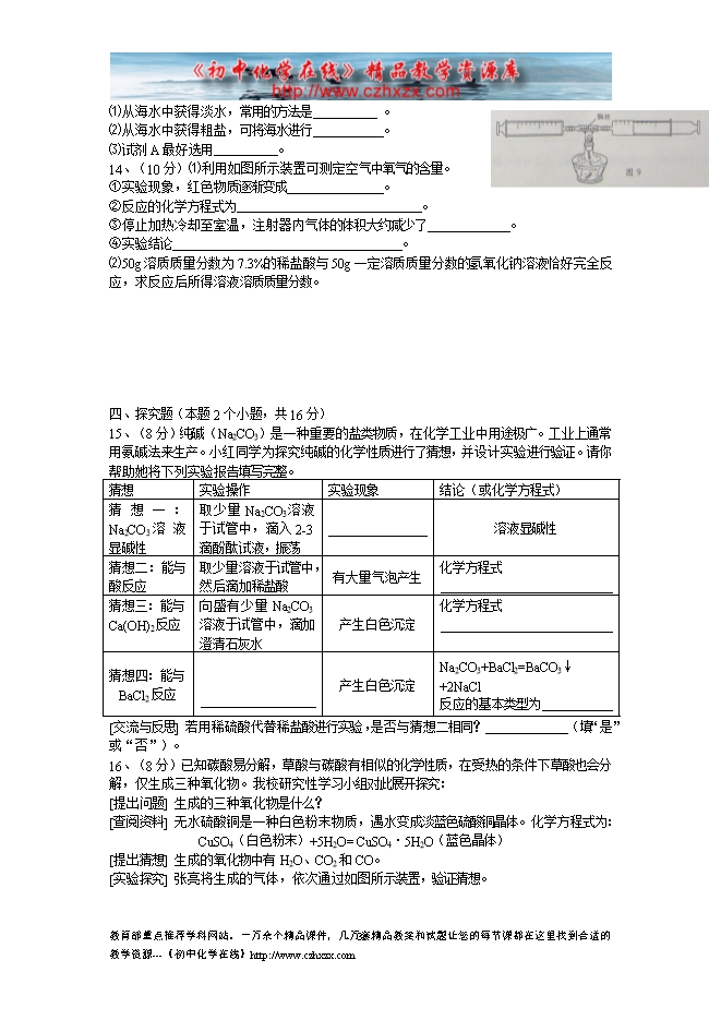 - 下一份试卷:2010年陕西省初中毕业生学业考试化学试题及答案