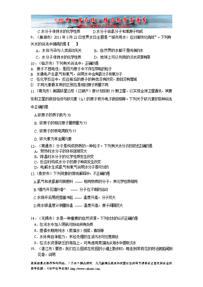 2010年中考化学试题分类汇编—第一单元 走进化学世界