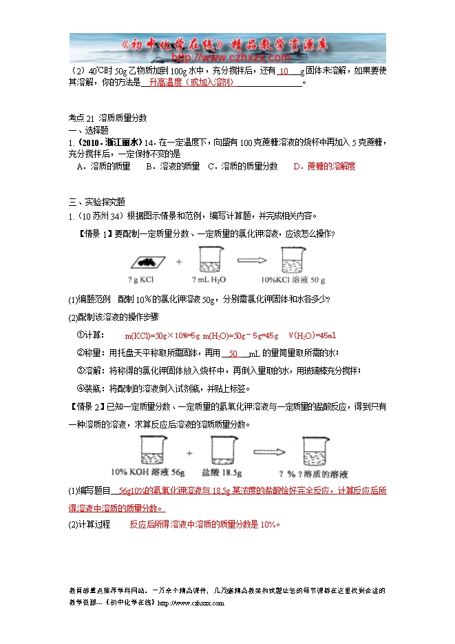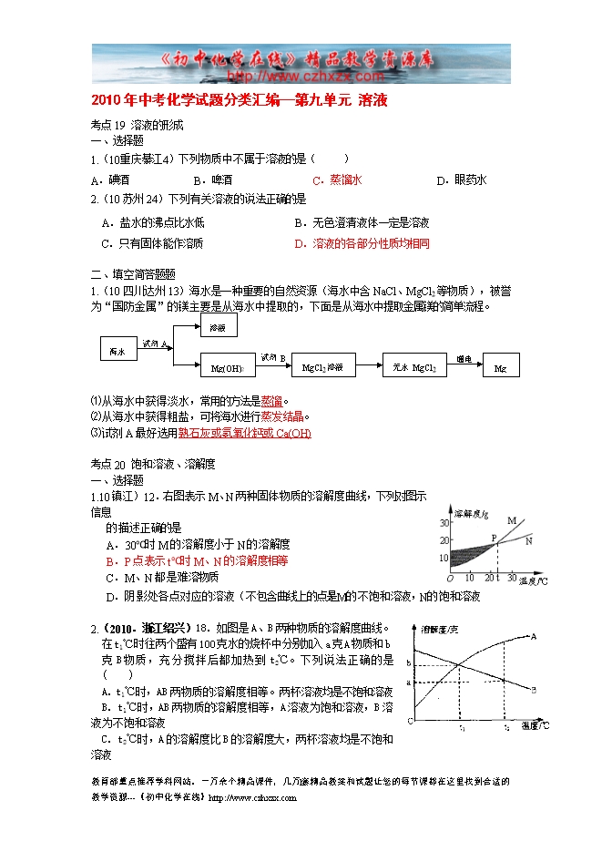 2010年中考化学试题分类汇编—第十二单元 化学与生活