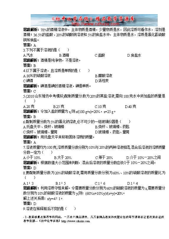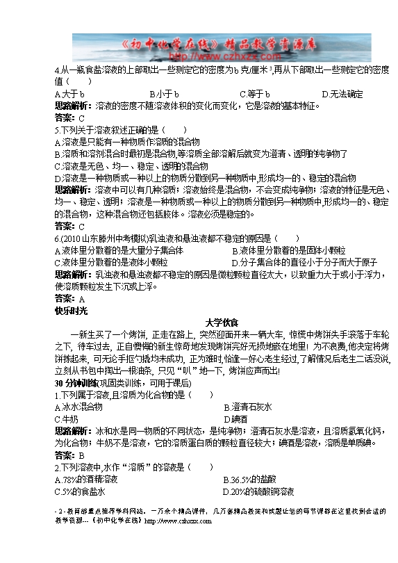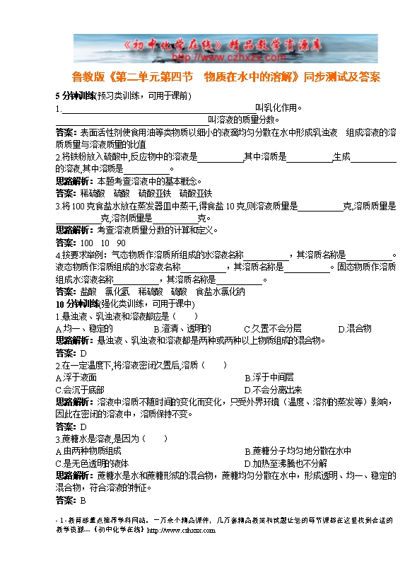 - 上一份试卷:鲁教版《第三章第一节 溶液的形成》同步测试(图片版)