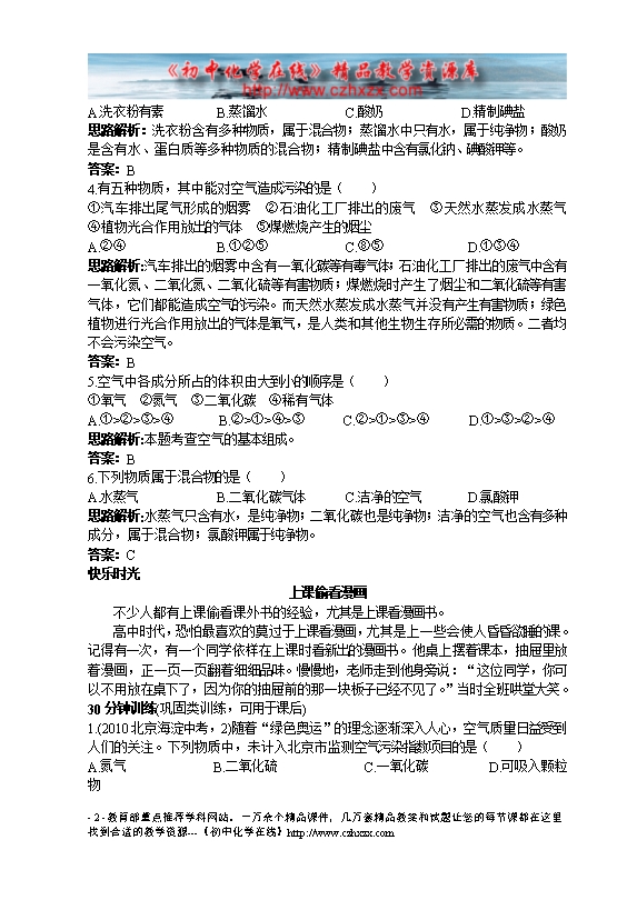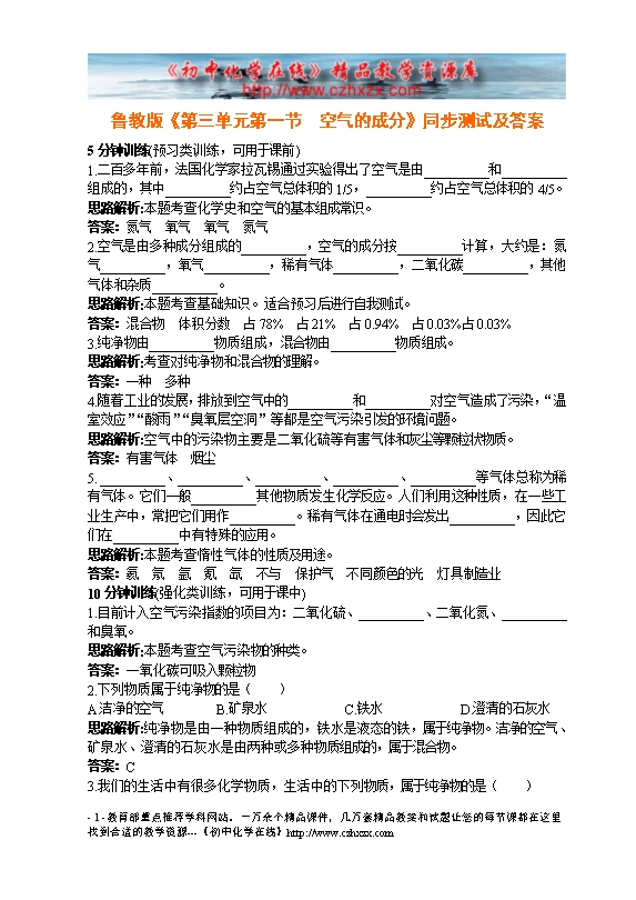 - 下一份试卷:鲁教版《第四章第二节 物质组成的表示》同步测试及答案