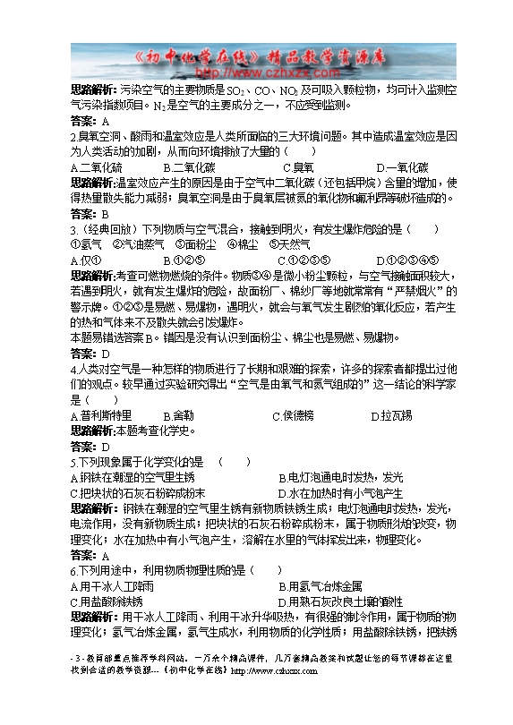 鲁教版《第四章第一节 空气的成分》同步测试及答案