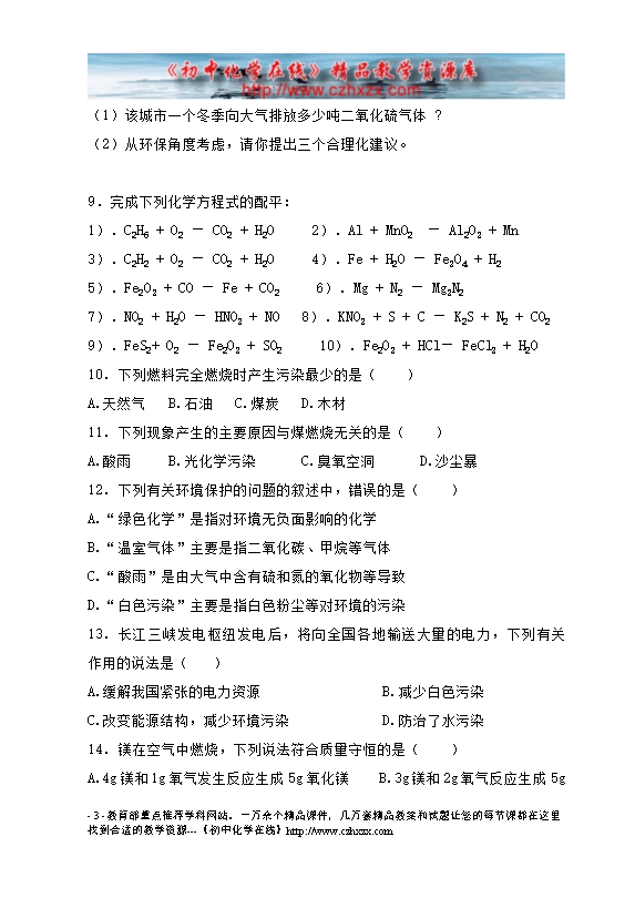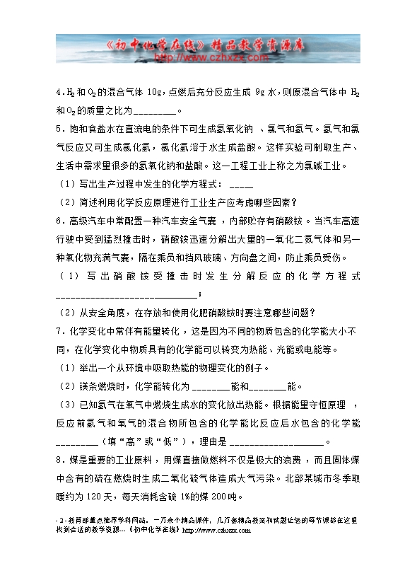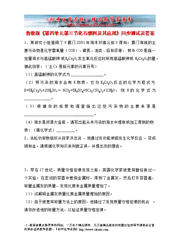 - 下一份试卷:鲁教版《第五章第二节 化学反应的表示》同步测试及答案