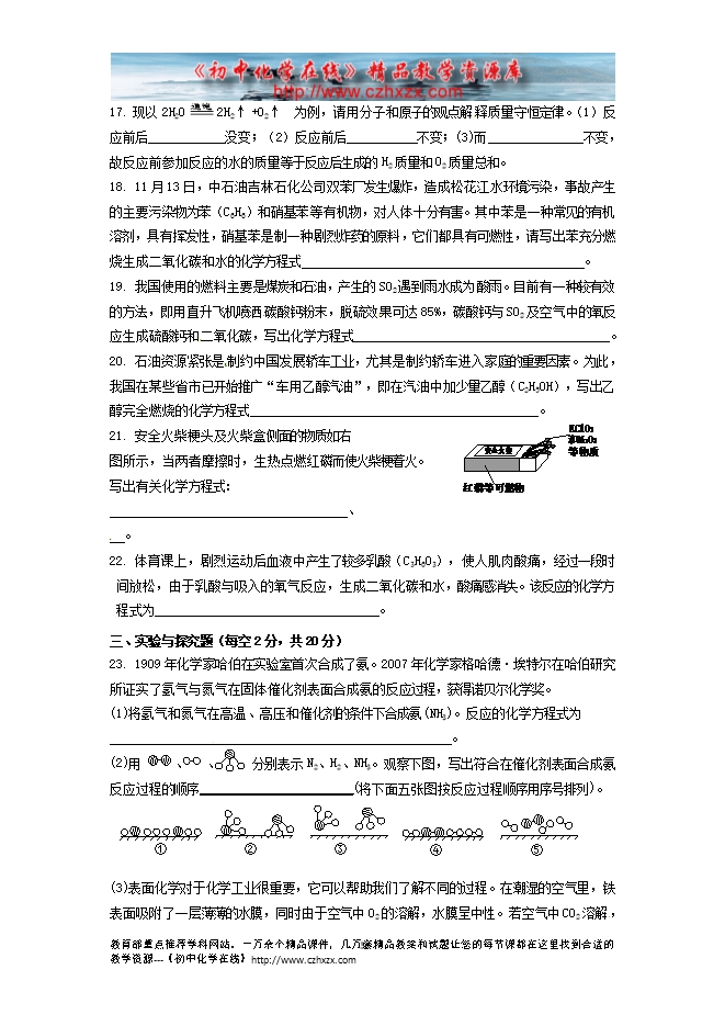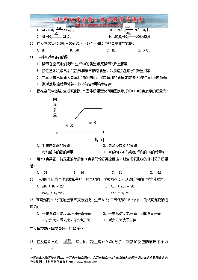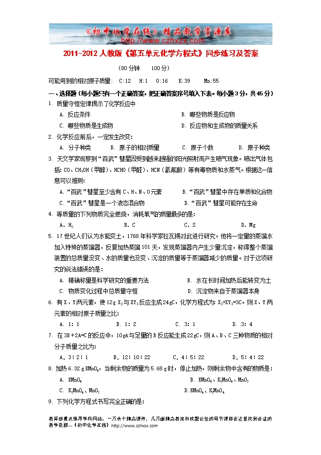 2011-2012人教版《第五单元化学方程式》同步练习及答案