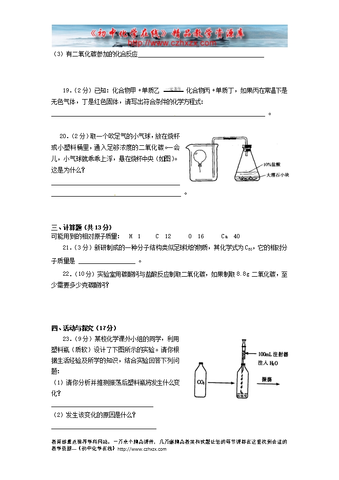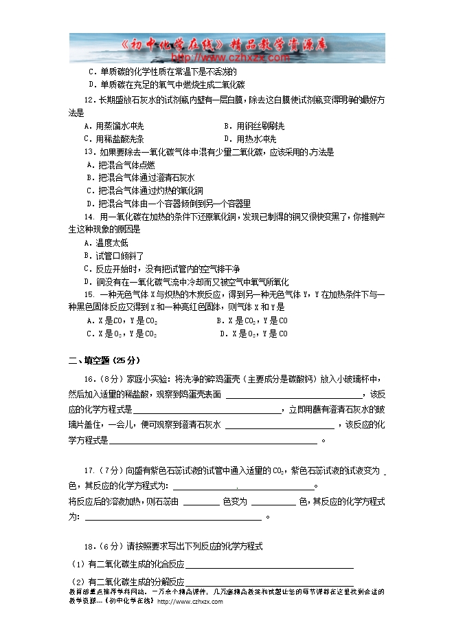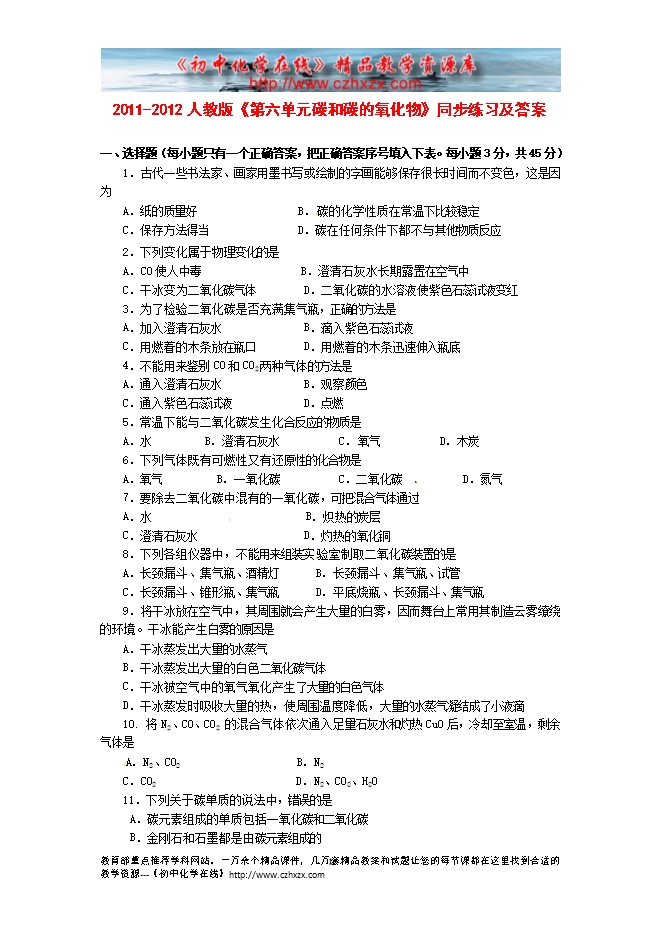 2011-2012人教版《第六单元 碳和碳的氧化物》同步练习及答案