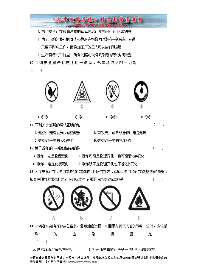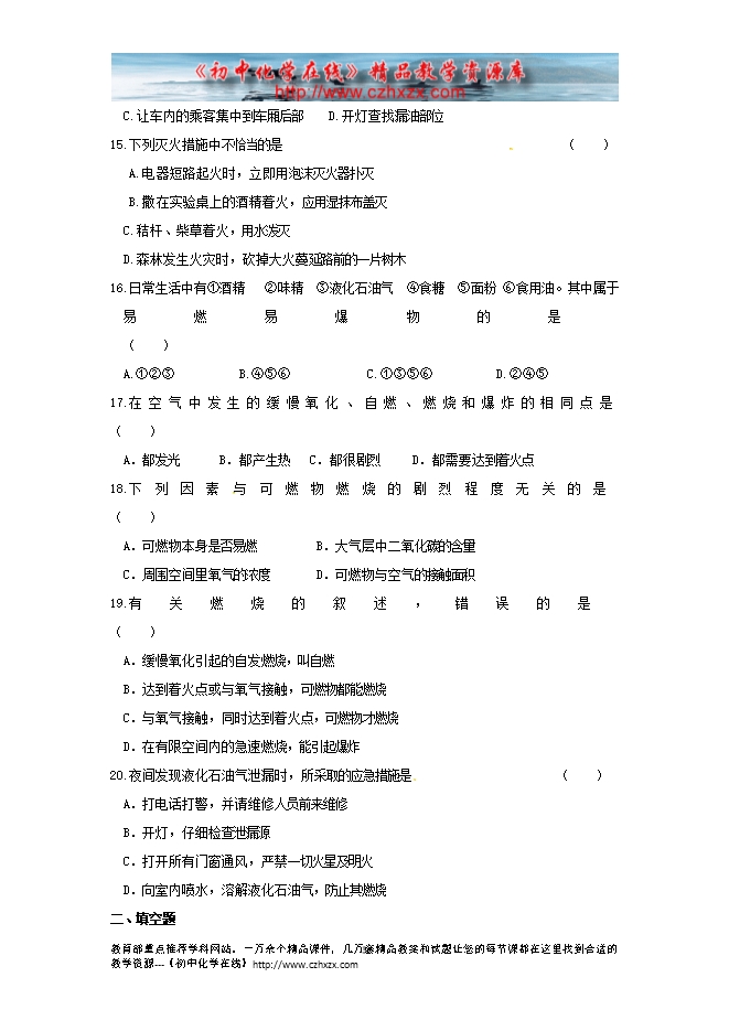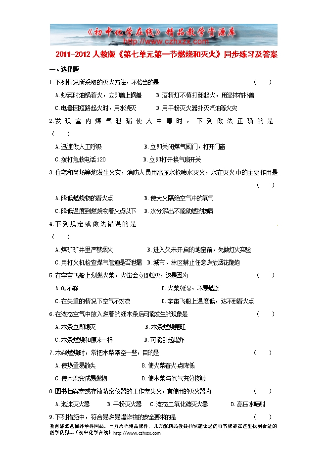 2011-2012人教版《第七单元第一节燃烧和灭火》同步练习及答案