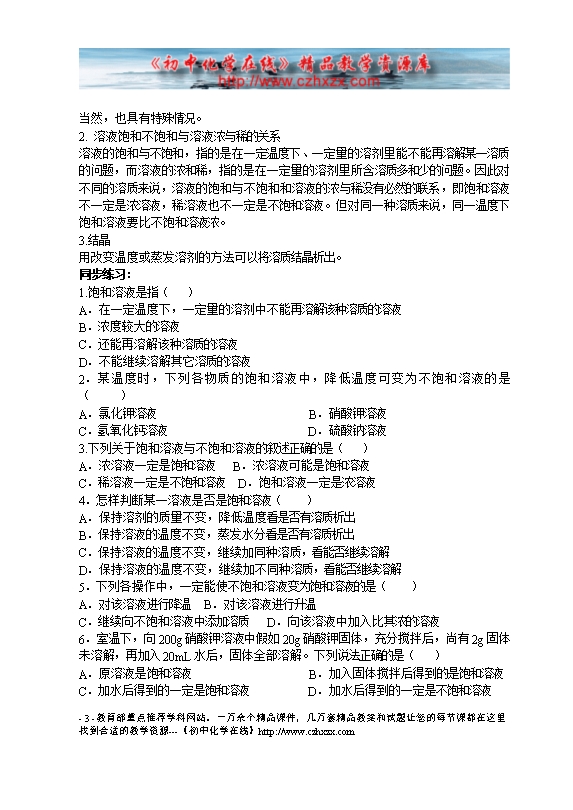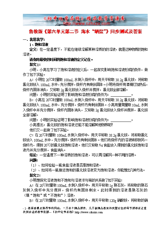 鲁教版《第六单元第二节 海水“晒盐”》同步测试及答案