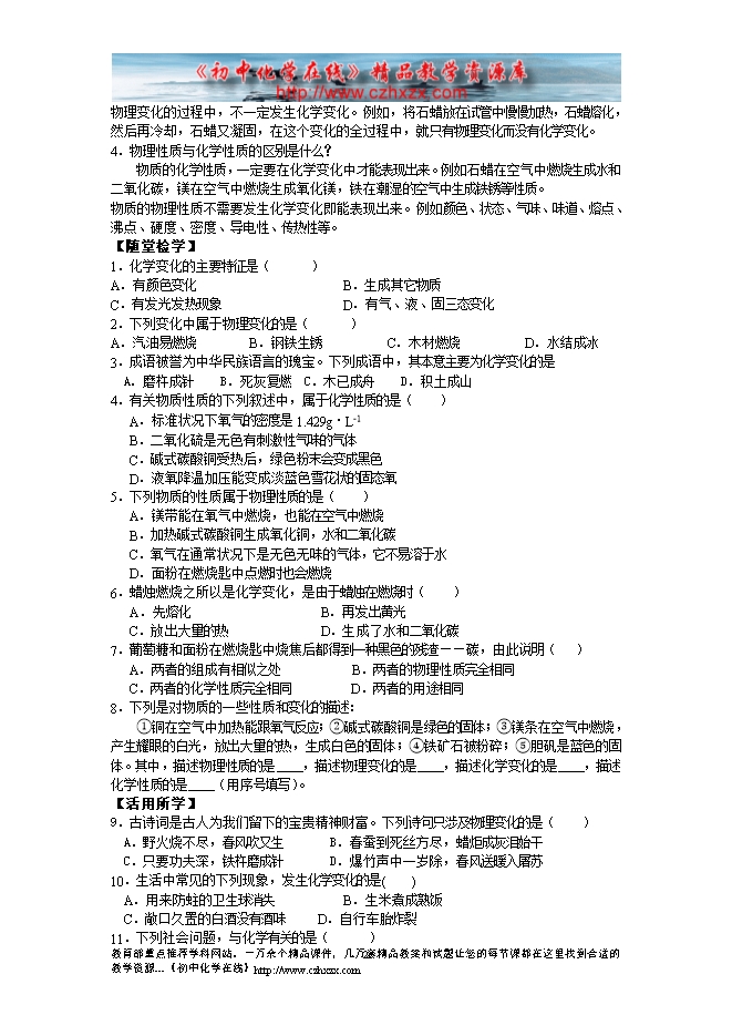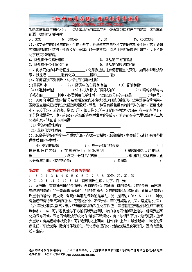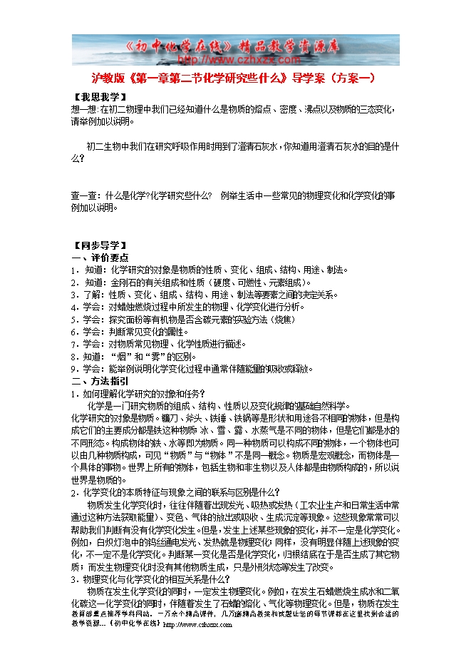 沪教版《第一章第二节 化学研究些什么》导学案(方案一)