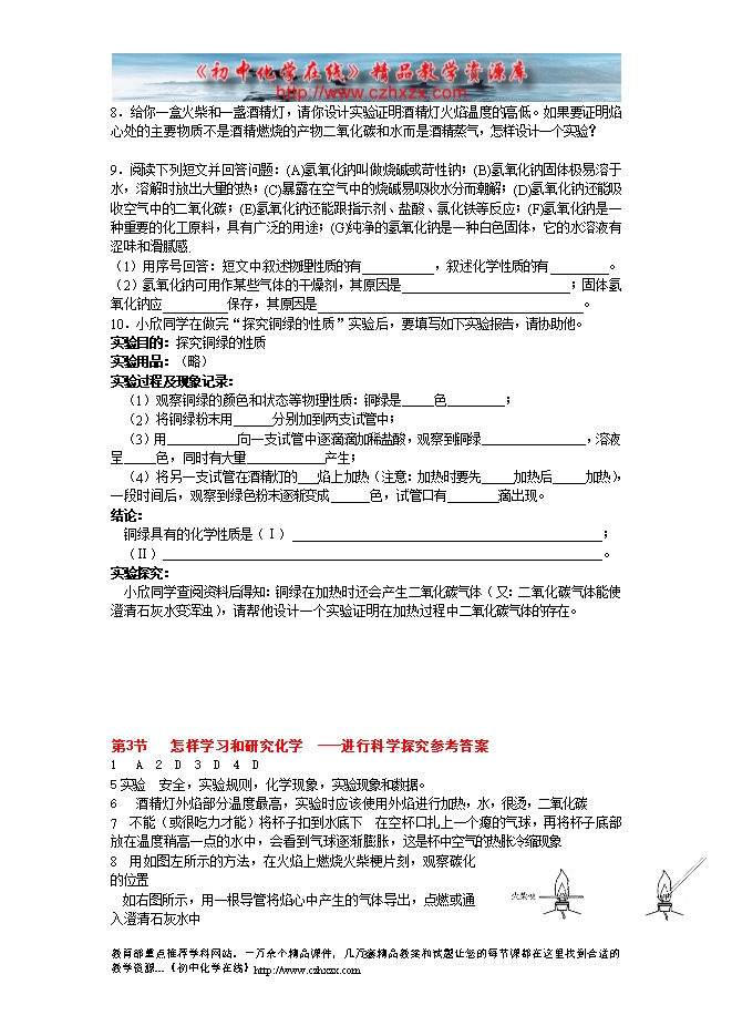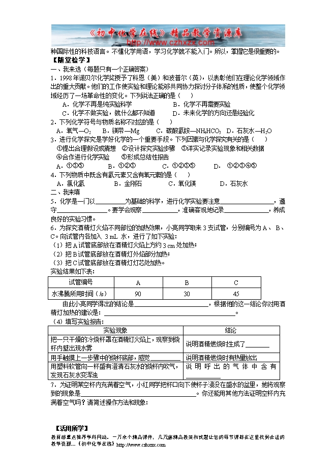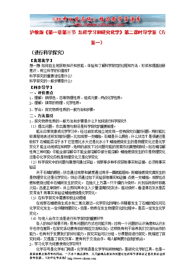 沪教版《第一章第三节 怎样学习和研究化学》第二课时导学案(方案1)