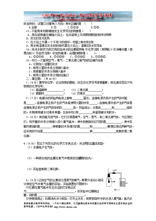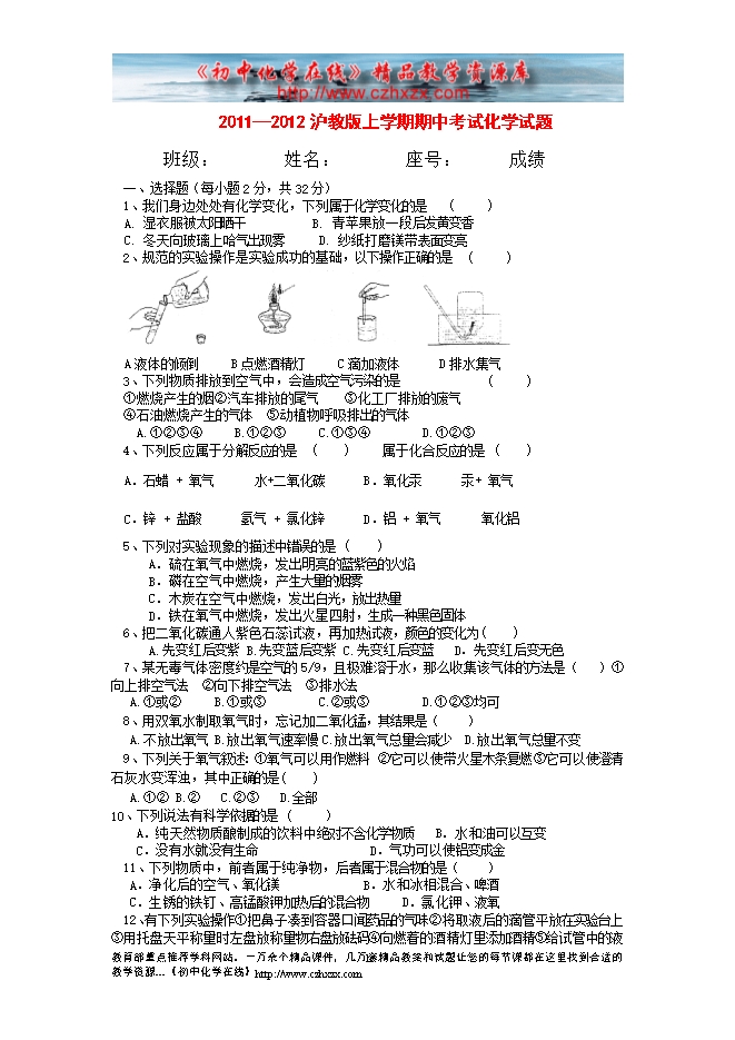 - 下一份试卷:鲁教版第一学期期中化学检测试题(无答案)