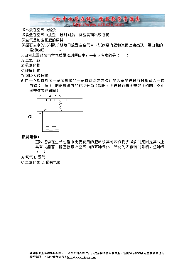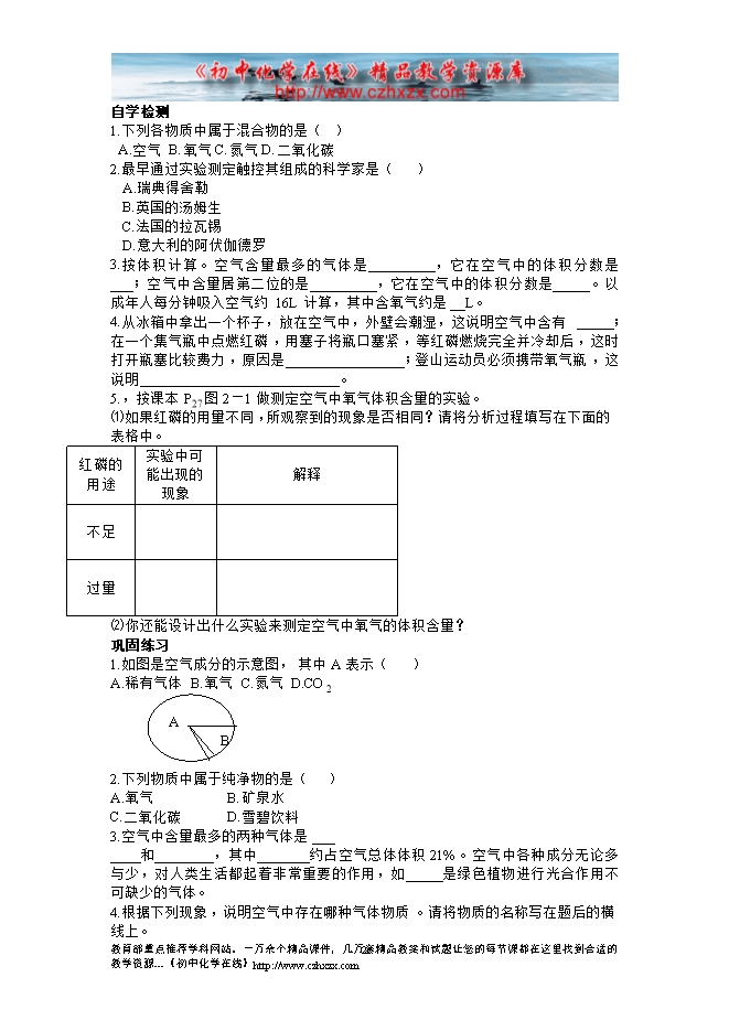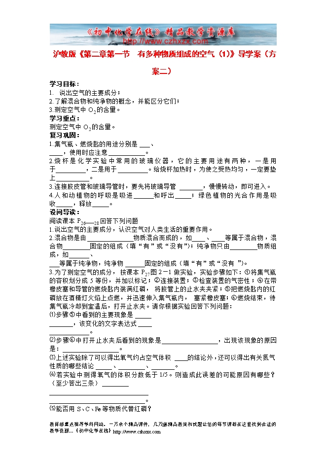 沪教版《第二多种物质组成的空气(1)》导学案(旧方案二)