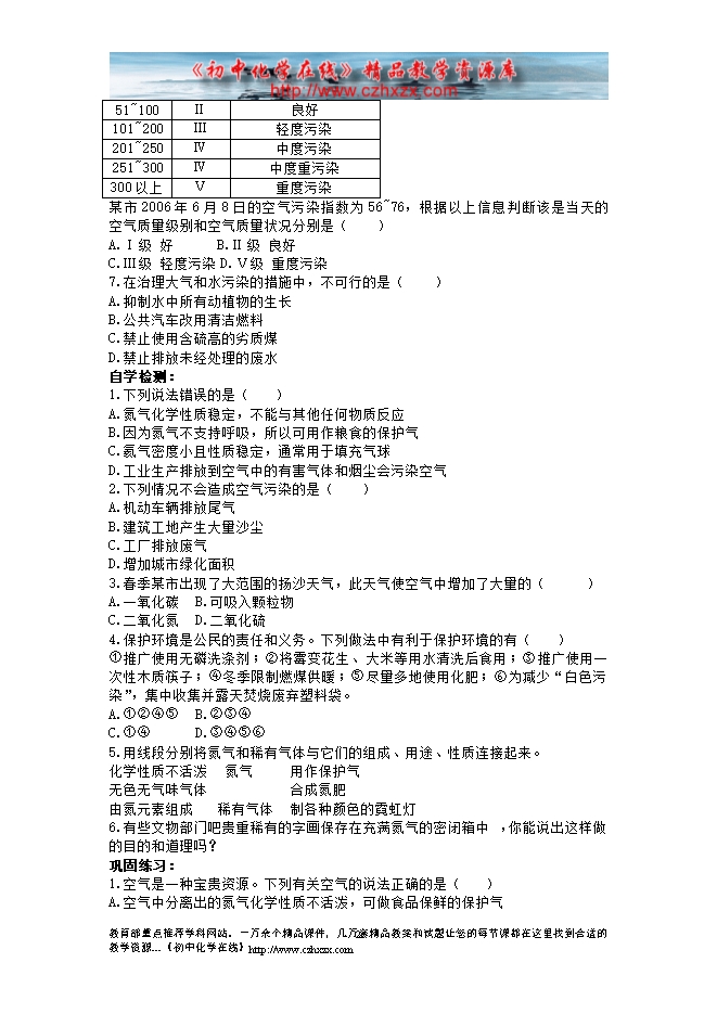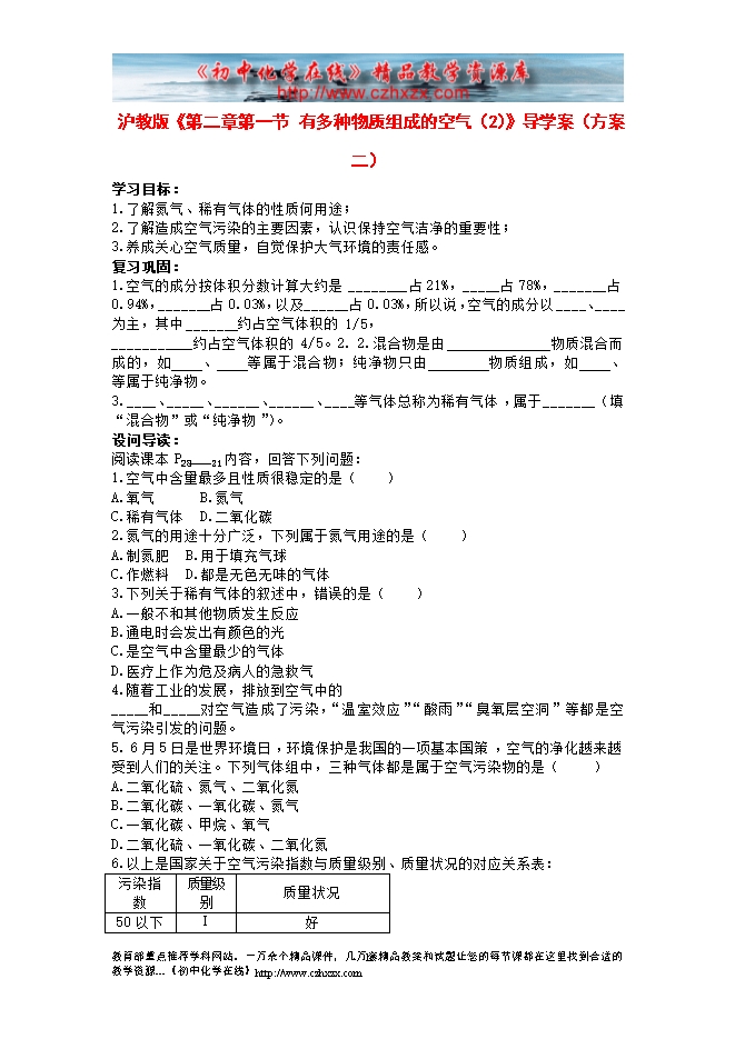 沪教版《第二章有多种物质组成的空气(2)》导学案(旧方案二)