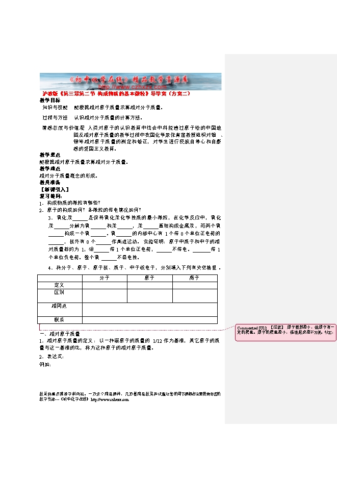 沪教版《第三章第一节 构成物质的基本微粒》导学案(方案二)