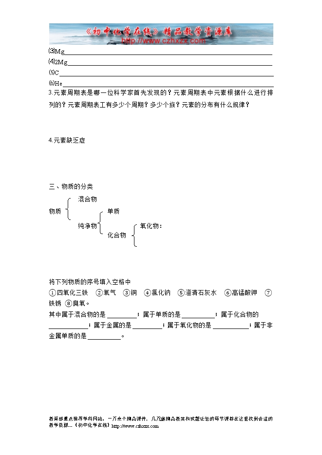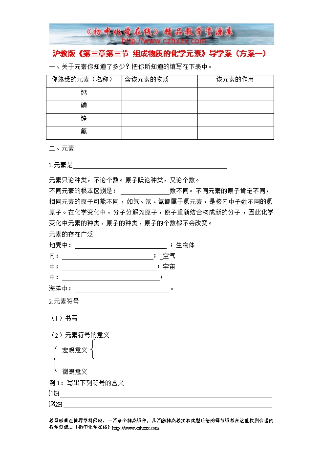 沪教版《第三章第二节 组成物质的化学元素》导学案(方案一)