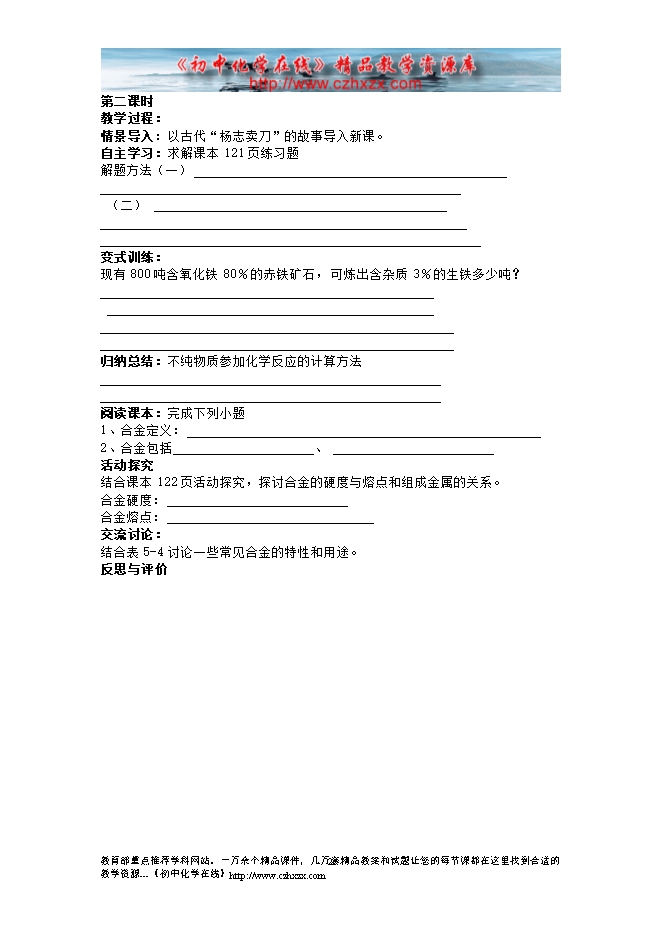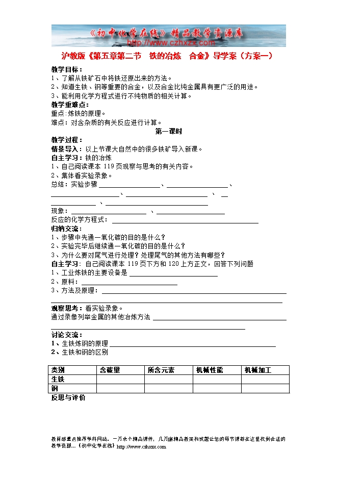 沪教版《第五章第二节 金属矿物 铁的冶炼》导学案(方案一)