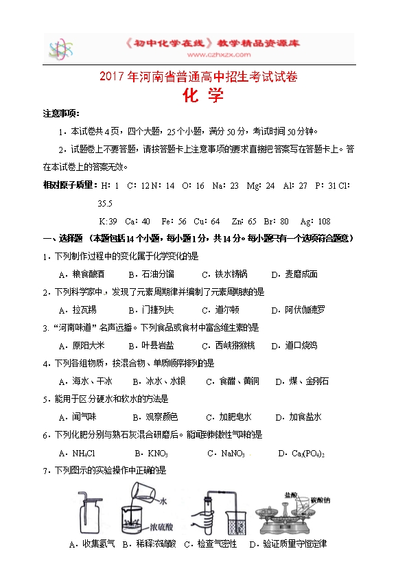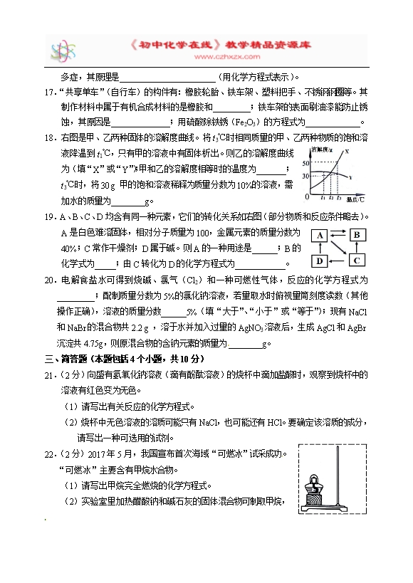 所属专辑: 《2017年各省市中考化学真题》专辑