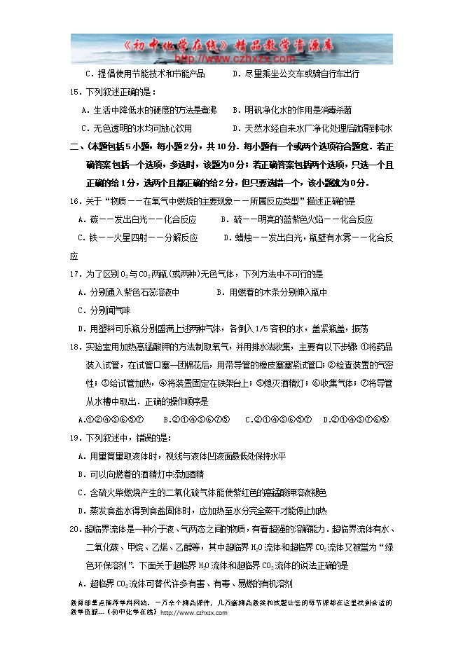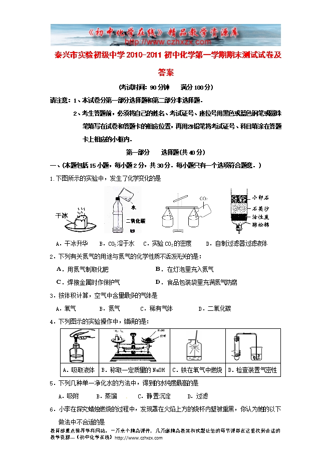 江苏省泰兴市实验初级中学2010-2011初中化学第一学期期末测试试卷及答案