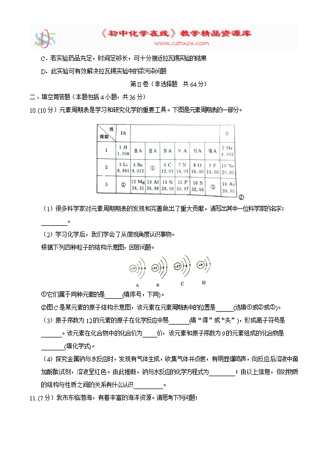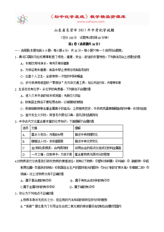 2017年山东省东营市中考化学试题(精校word版,含答案)