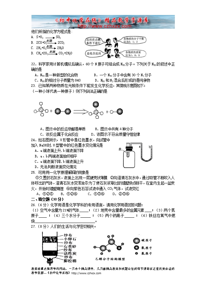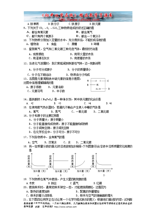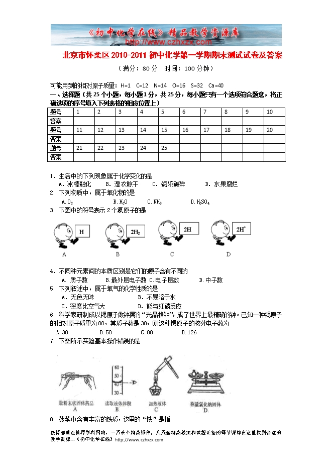 北京市怀柔区2010-2011初中化学第一学期期末测试试卷及答案