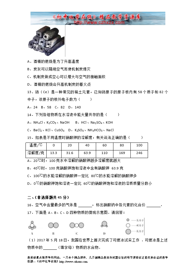 所属专辑: 《2017年各省市中考化学真题》专辑