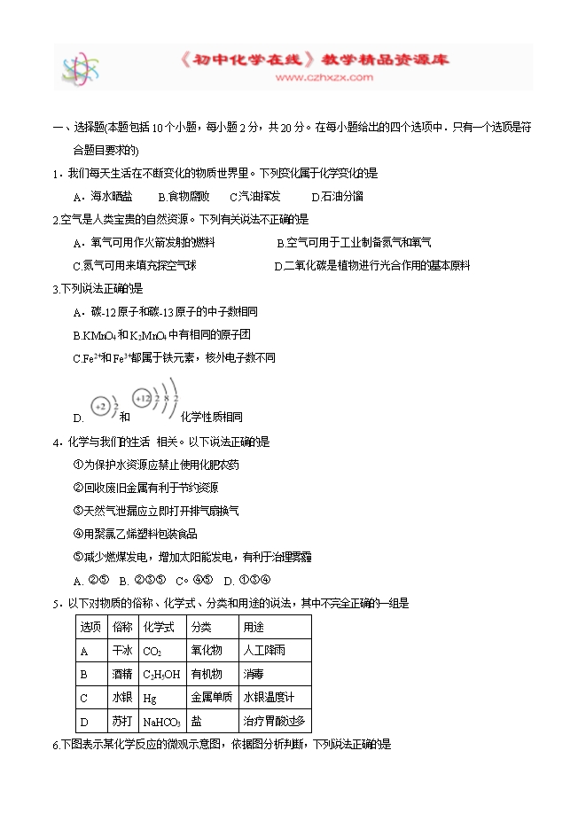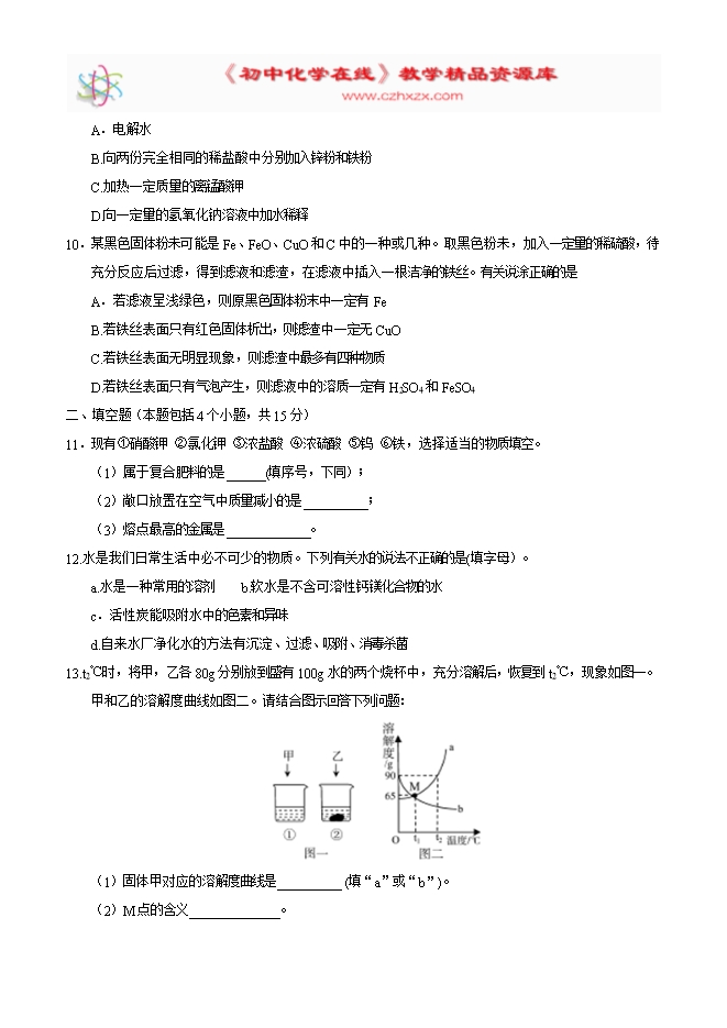2017年内蒙古呼和浩特市中考化学试题(精校word版,含答案)