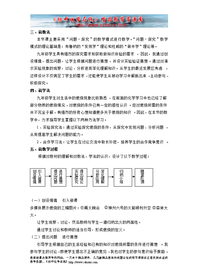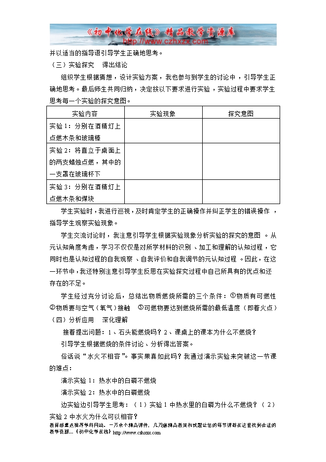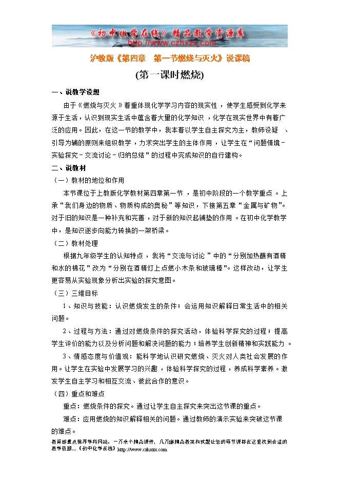 人教版初中化学《第七单元第一节 燃烧与灭火》说课稿