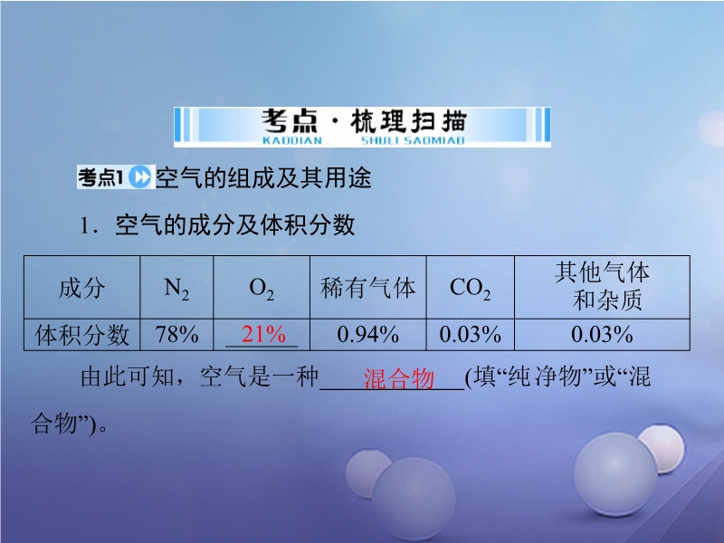 广东省2017年中考化学复习第一部分考点复习第1讲《我们身边的化学物质--空气氧气》ppt课件