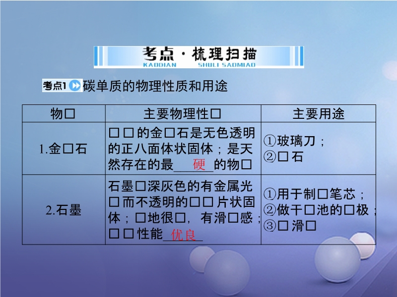 【内容简介】广东省2017年中考化学复习第一部分考点复习第3讲《我们身边的化学物质--碳和碳的氧化物》ppt课件