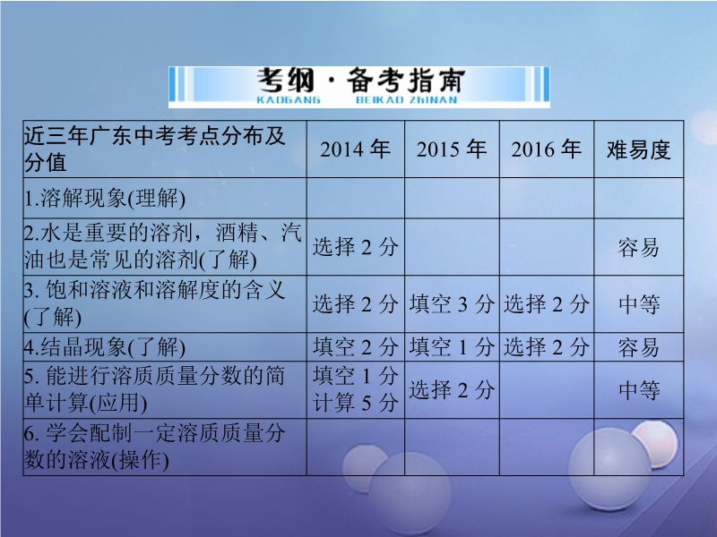 广东省2017年中考化学复习第一部分考点复习第5讲《我们身边的化学物质--溶液》课件