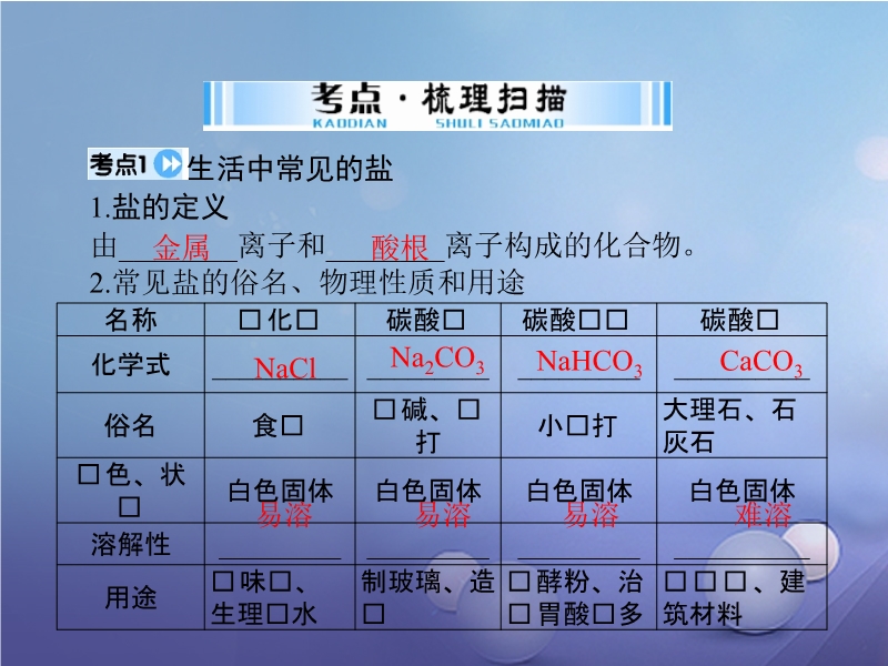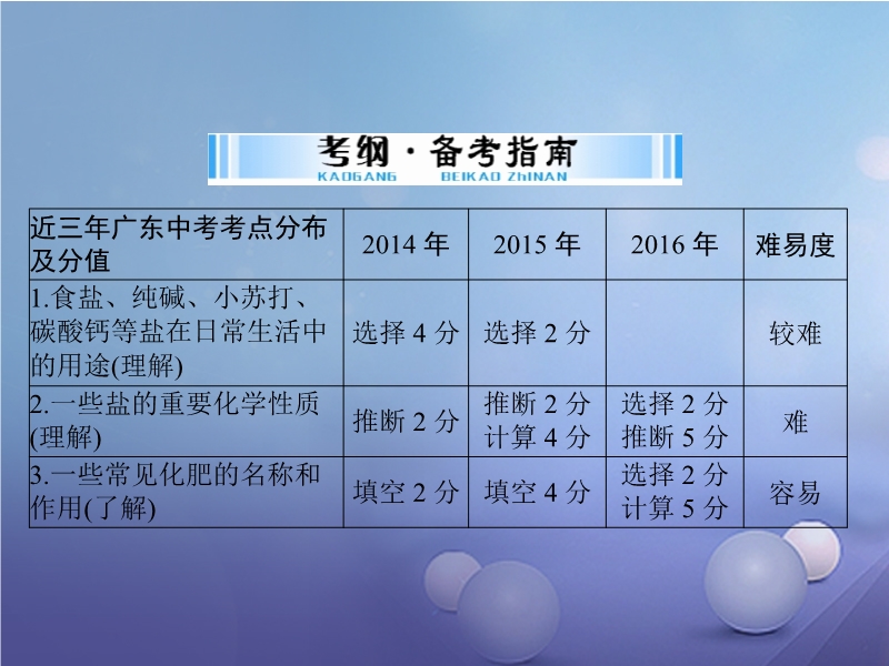 广东省2017年中考化学复习第一部分考点复习第7讲《我们身边的化学物质--常见的盐化学肥料》课件