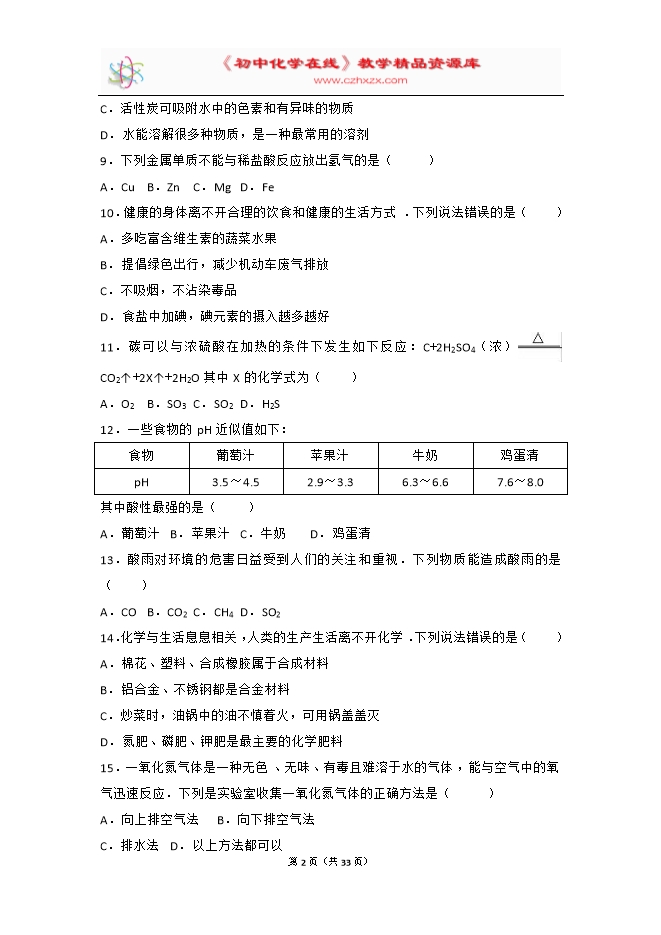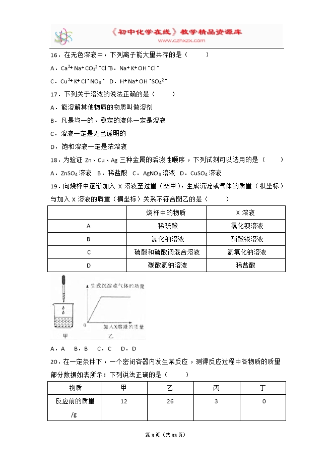 所属专辑: 《2017年各省市中考化学真题》专辑