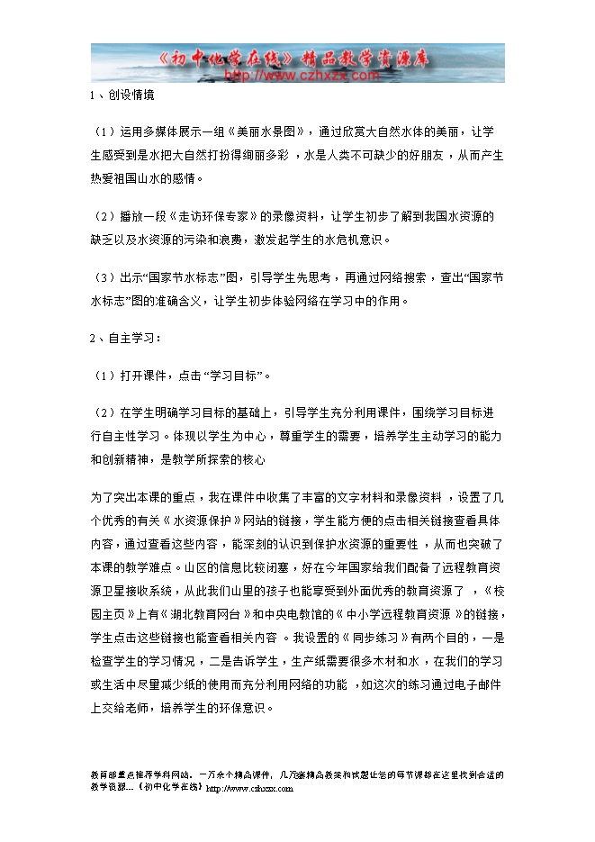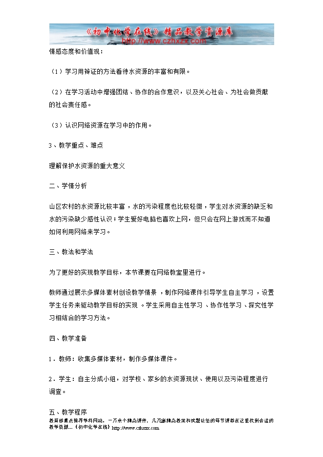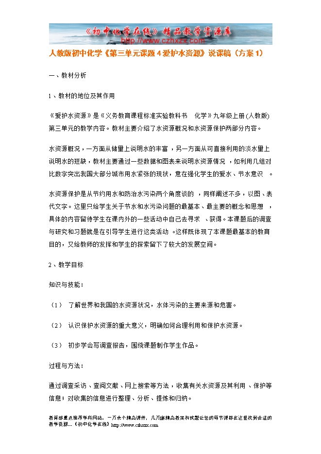 人教版初中化学《第四单元课题1 爱护水资源》说课稿(方案1)