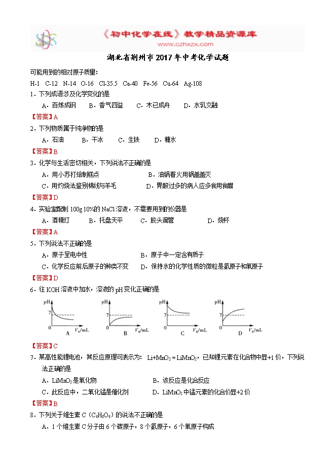 资料审核:初中化学在线