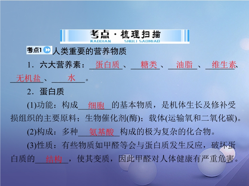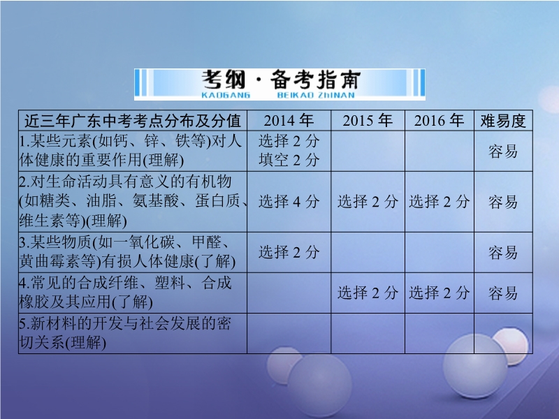 【内容简介】广东省2017年中考化学复习第一部分考点复习第15讲《化学与社会发展--化学与生活》课件