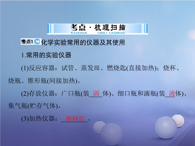广东省2017年中考化学复习第一部分考点复习第17讲《化学基本实验技能--常用仪器与实验基本操作》课件