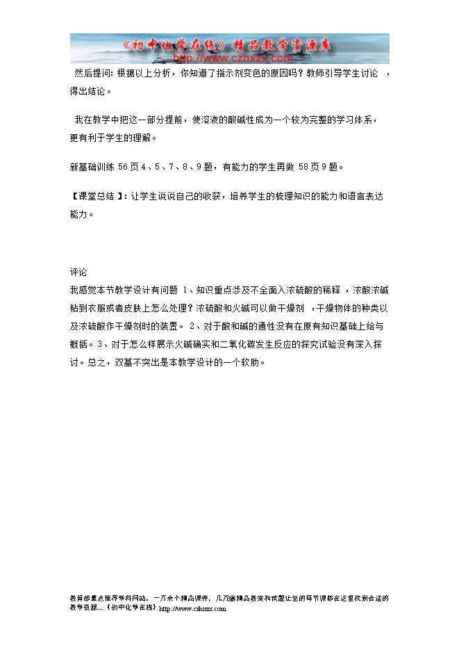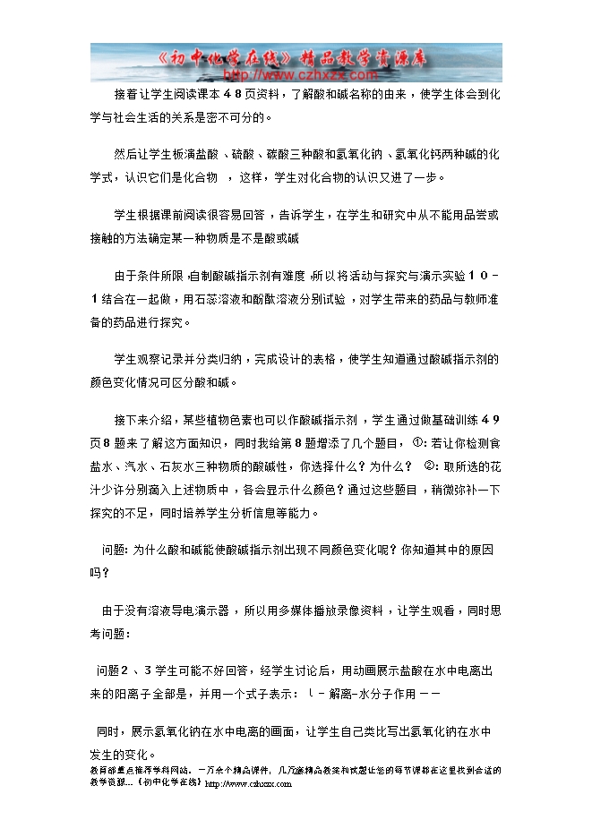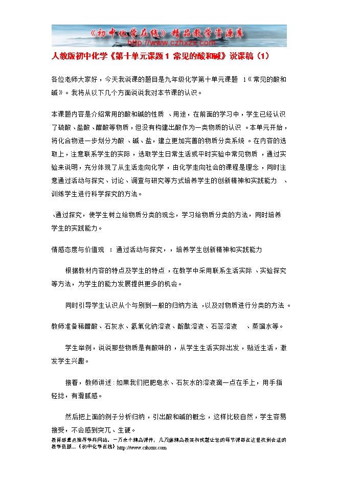 人教版初中化学《第十单元课题1 常见的酸和碱》说课稿(1)