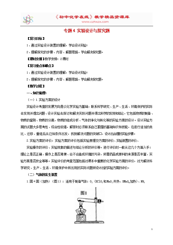 2017届中考化学二轮复习专题突破《专题4 实验设计与探究题》复习教案