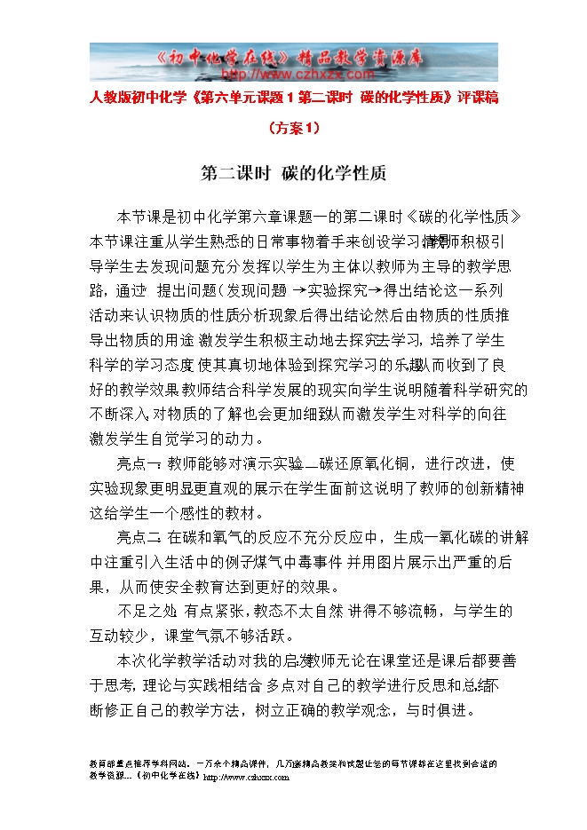 人教版初中化学《第六单元课题1第二课时 碳的化学性质》评课稿(方案1)