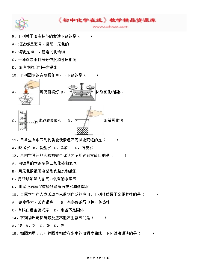 - 上一份试卷:广东省汕头市龙湖实验中学2017届九年级下学期开学考试化学试题(word版,无答案)(人教版)