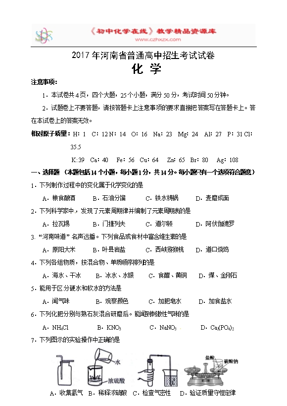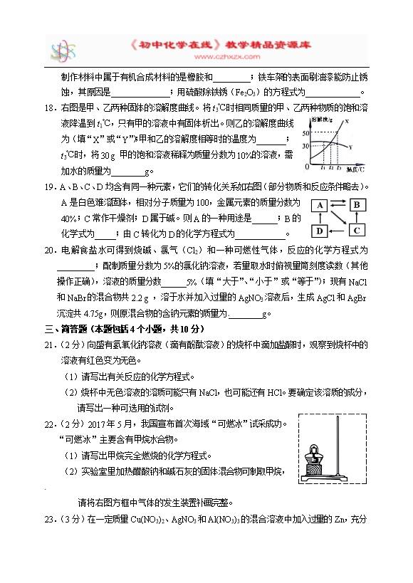所属专辑: 《2017年各省市中考化学真题》专辑