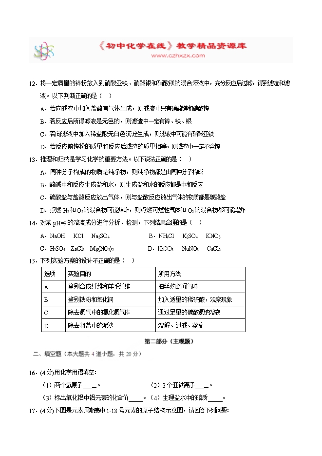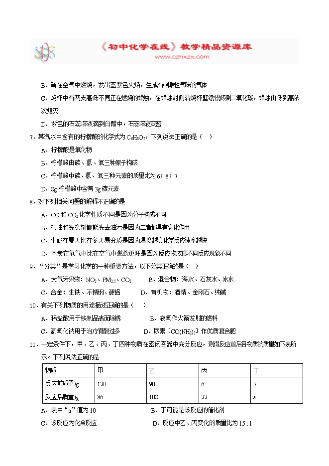 所属专辑: 《2017年各省市中考化学真题》专辑
