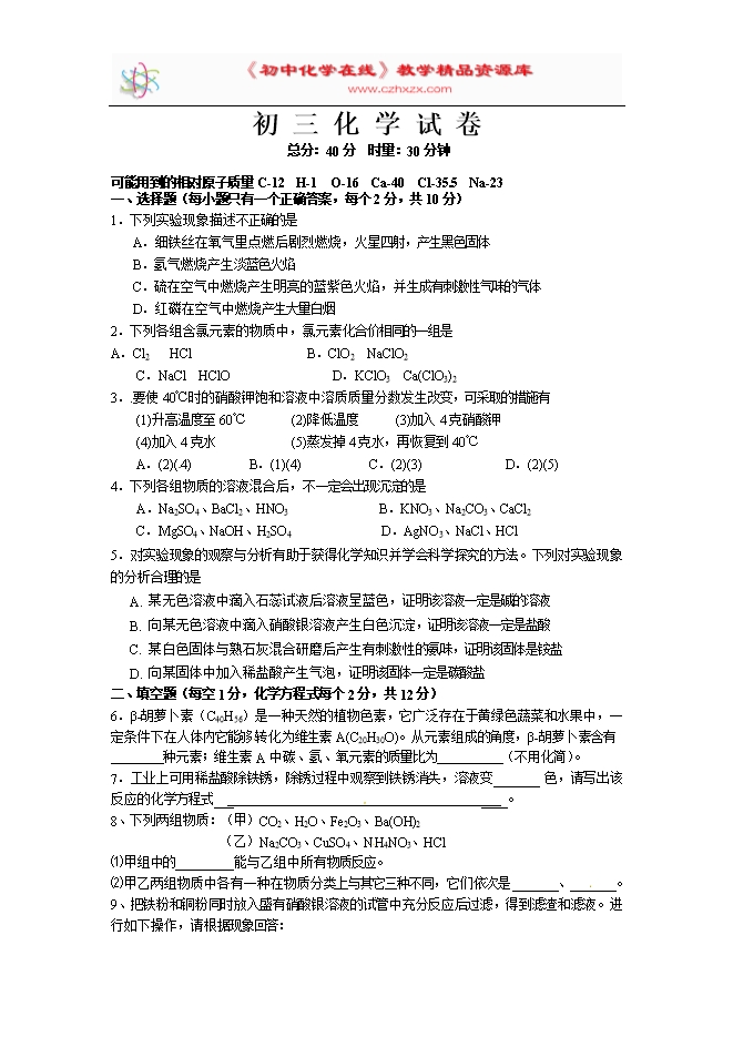 资料审核:初中化学在线
