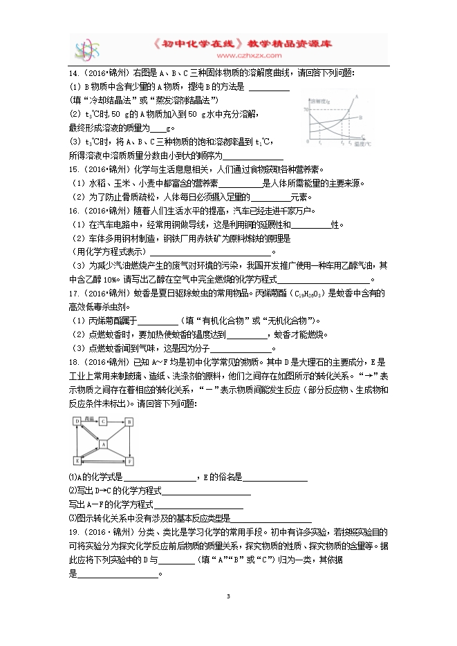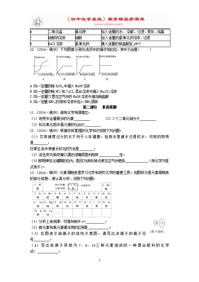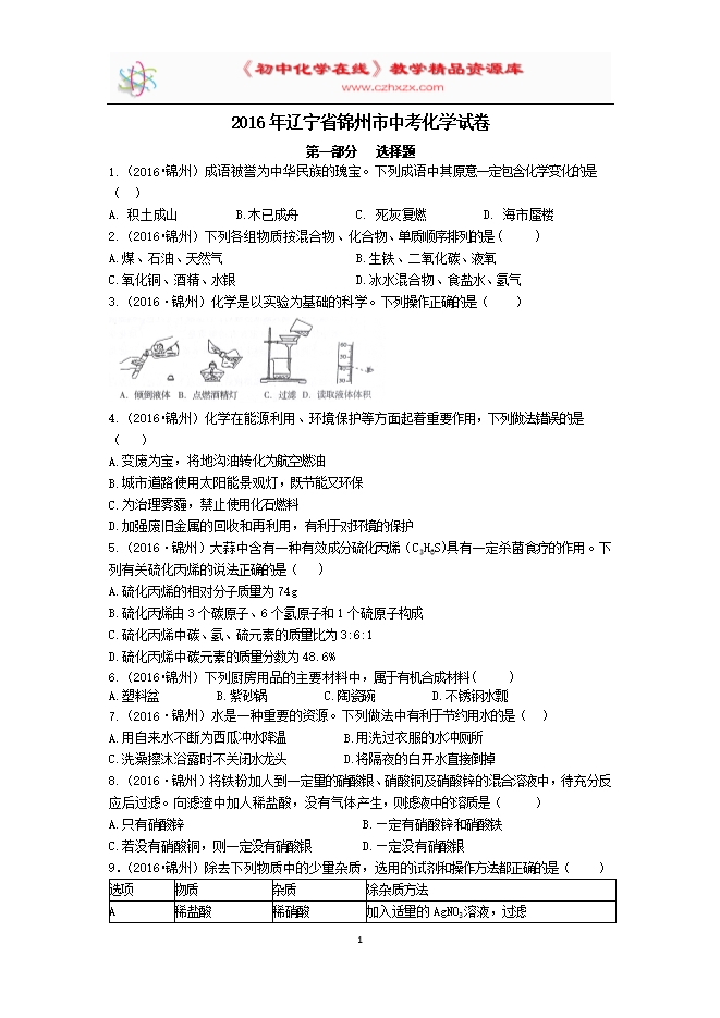 2016年辽宁省锦州市中考化学试卷(word版,无答案)