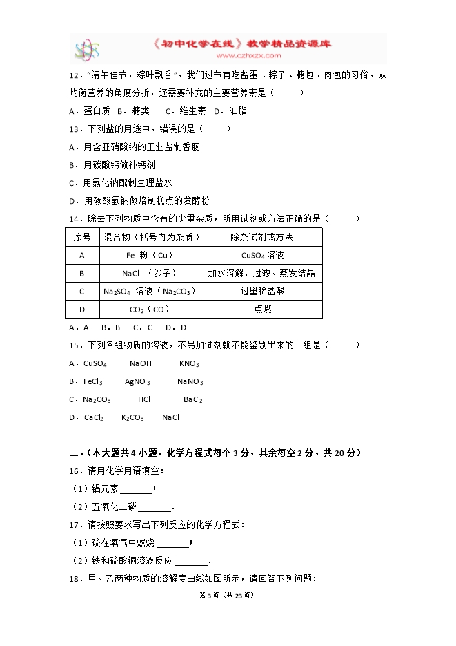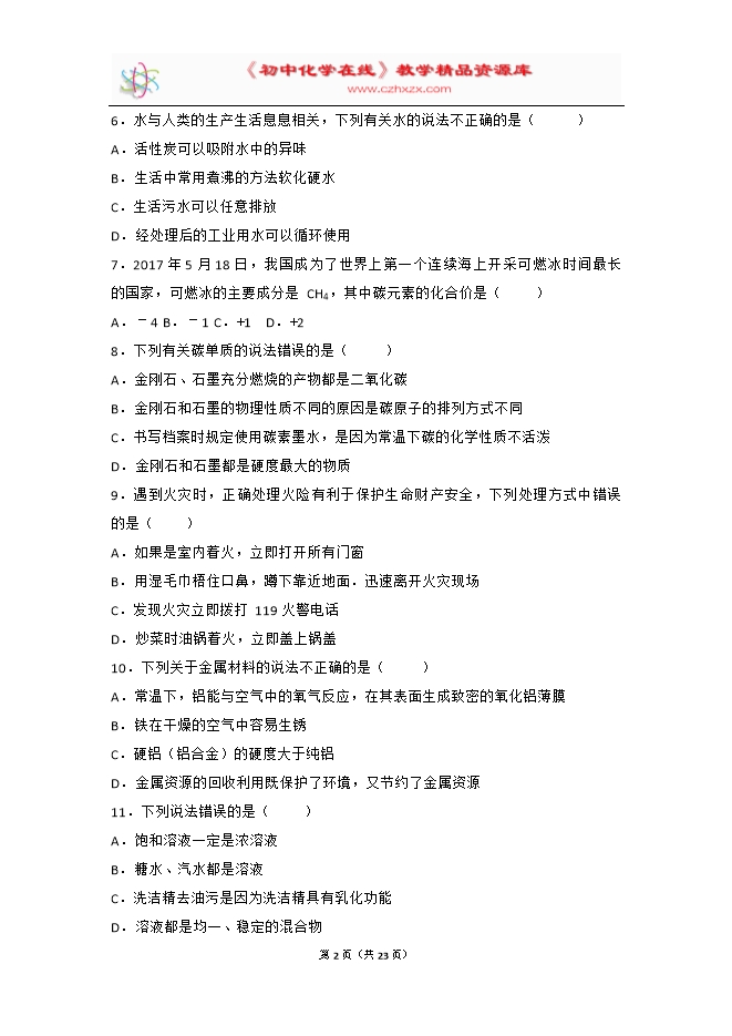 所属专辑: 《2017年各省市中考化学真题》专辑