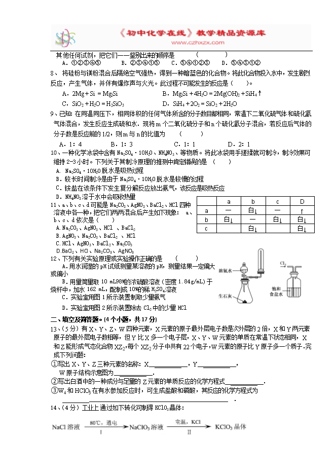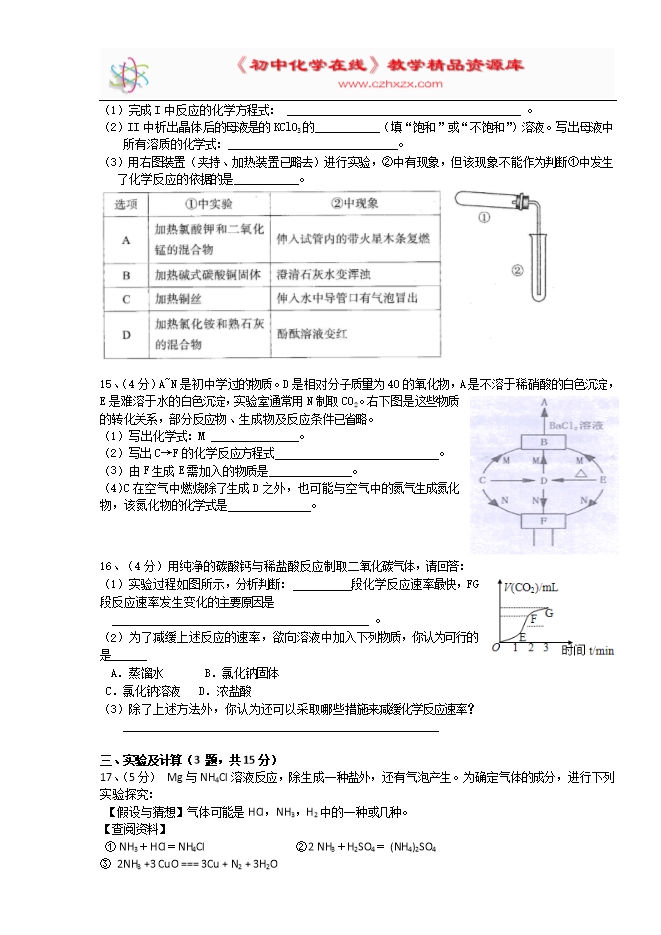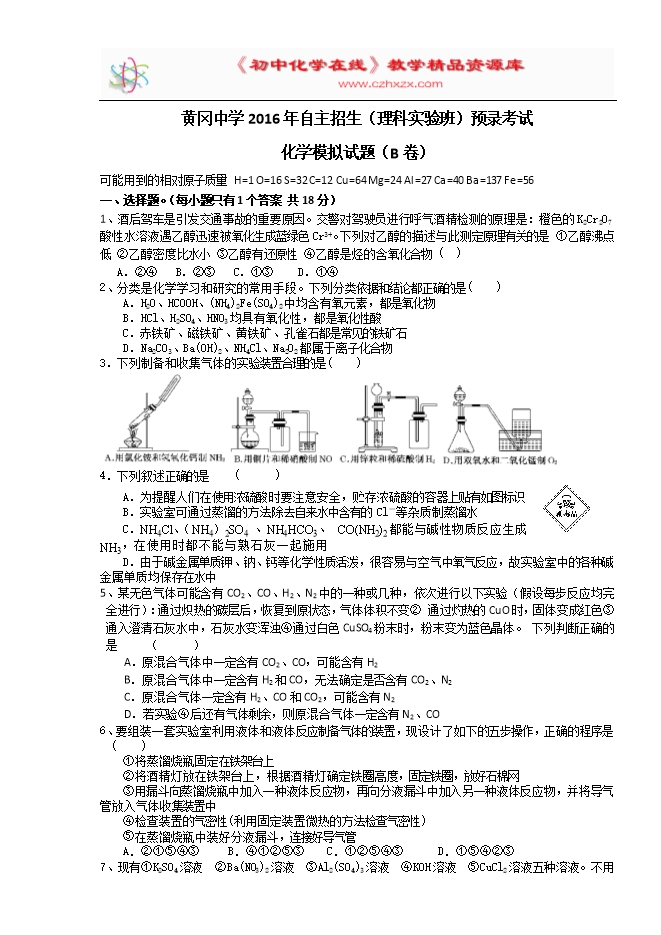 黄冈中学2016年自主招生理科实验班预录考试化学模拟试题 B卷(word版含答案)