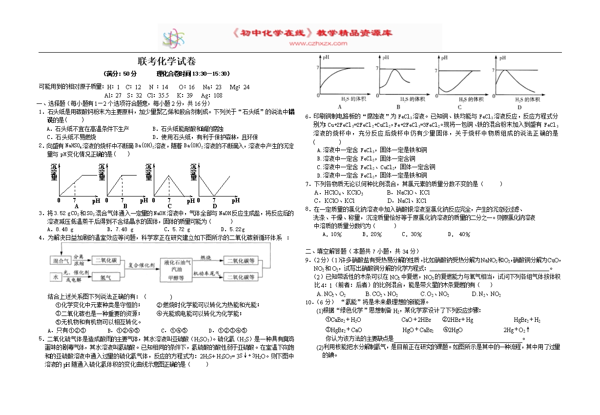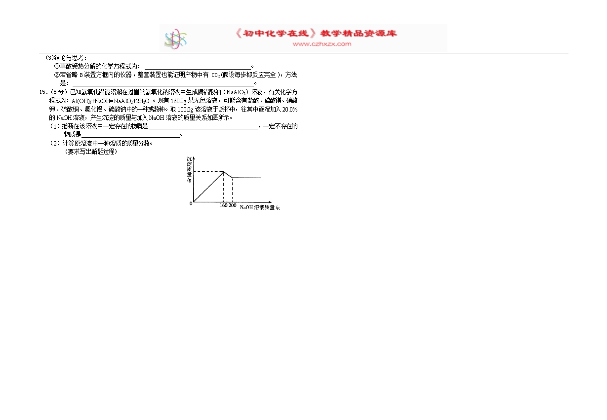 黄冈中学2016年理科实验班预录模拟考试化学试卷(word版含答案)