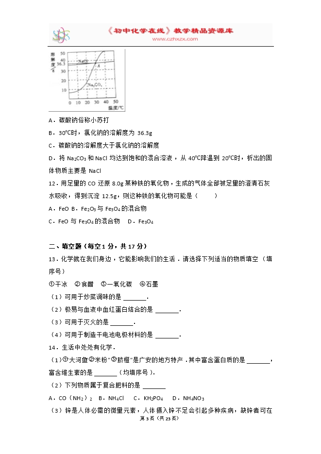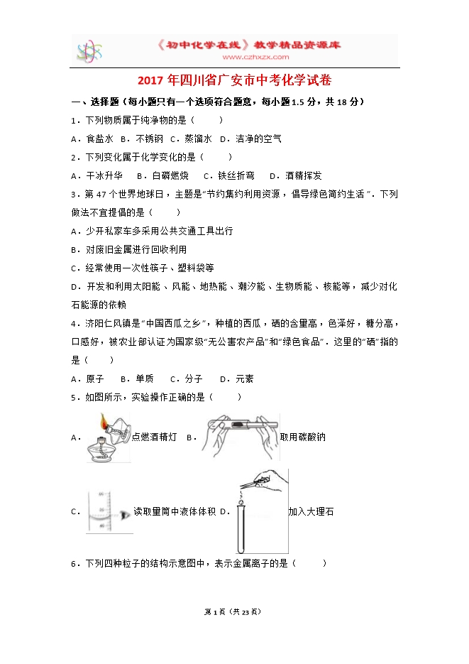 2017年四川省广安市中考化学试卷(word解析版)