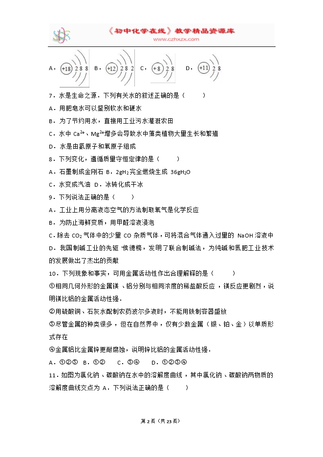 - 下一份试卷:2017年四川省内江市中考化学试卷(word解析版)