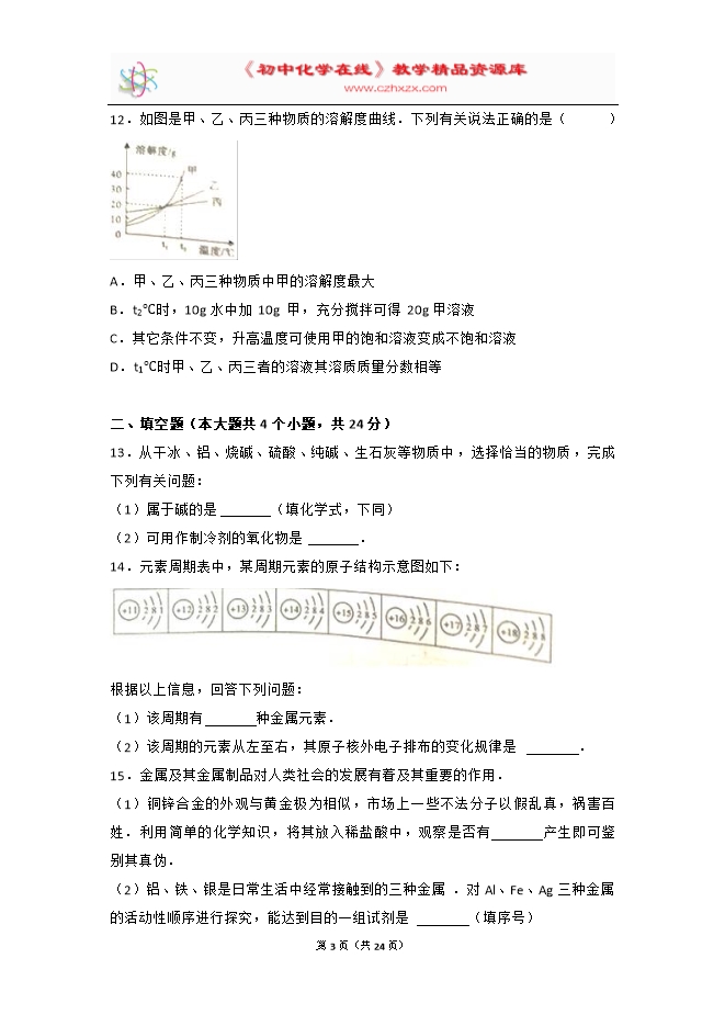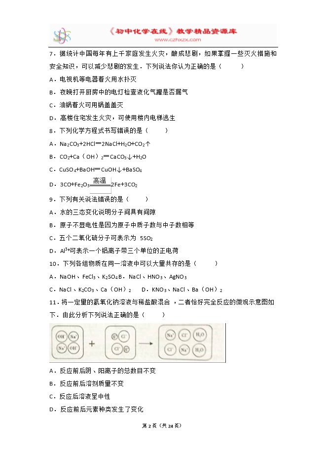 - 下一份试卷:2017年四川省雅安市中考化学试卷(word解析版)