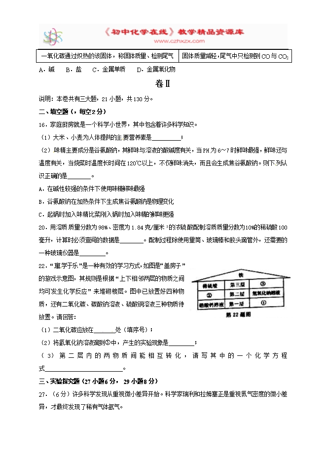 - 下一份试卷:2017年浙江省绍兴市中考化学试卷(解析版)